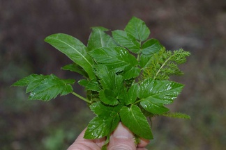 Muista villivihanneksista löysin vuohenputken jälkeen seuraavaksi siankärsämön nuoret lehdet. Niitä laitan leivälle ja salaattiin selvästi vähemmän kuin vuohenputkea.