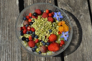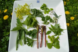 Villiruokasalaattiin on vuohenputken, siankärsämön ja vaahterankukkien lisäksi alkanut nyt päätyä paljon muutakin: poimulehteä, pihlajansilmuja, mansikanlehtiä, vadelmanlehtiä, mustikanlehtiä, voikukannuppuja. Ja tietysti ketunleipää, suolakkeita ja kuusenkerkkiä.