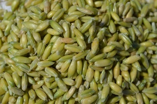 ![]() Tuoreet "käsinpuidut" rukiinjyvät. Piikkien kanssa on syytä olla tarkkana. Niiden erottamiseksi jyvät voi levittää valkoiselle paperille. |