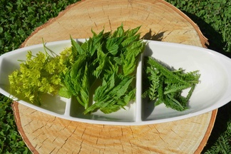 ![]() Luonnossa riittää syötävää. Vasemmalta voikukanlehtiä, nokkosta, vaahterankukkia, poimulehteä, vuohenputkea, siankärsämöä, horsmaa, ahomansikan lehtiä, ketunleipää, mustikanlehtiä, koivunlehtiä, kuusenkerkkiä, vadelmanlehtiä, pihlajansilmuja ja suolaheinää eli suolakkeita. Kaikki muut paitsi nokkonen ja horsma käyvät tuoresalaattiin sellaisenaan. |